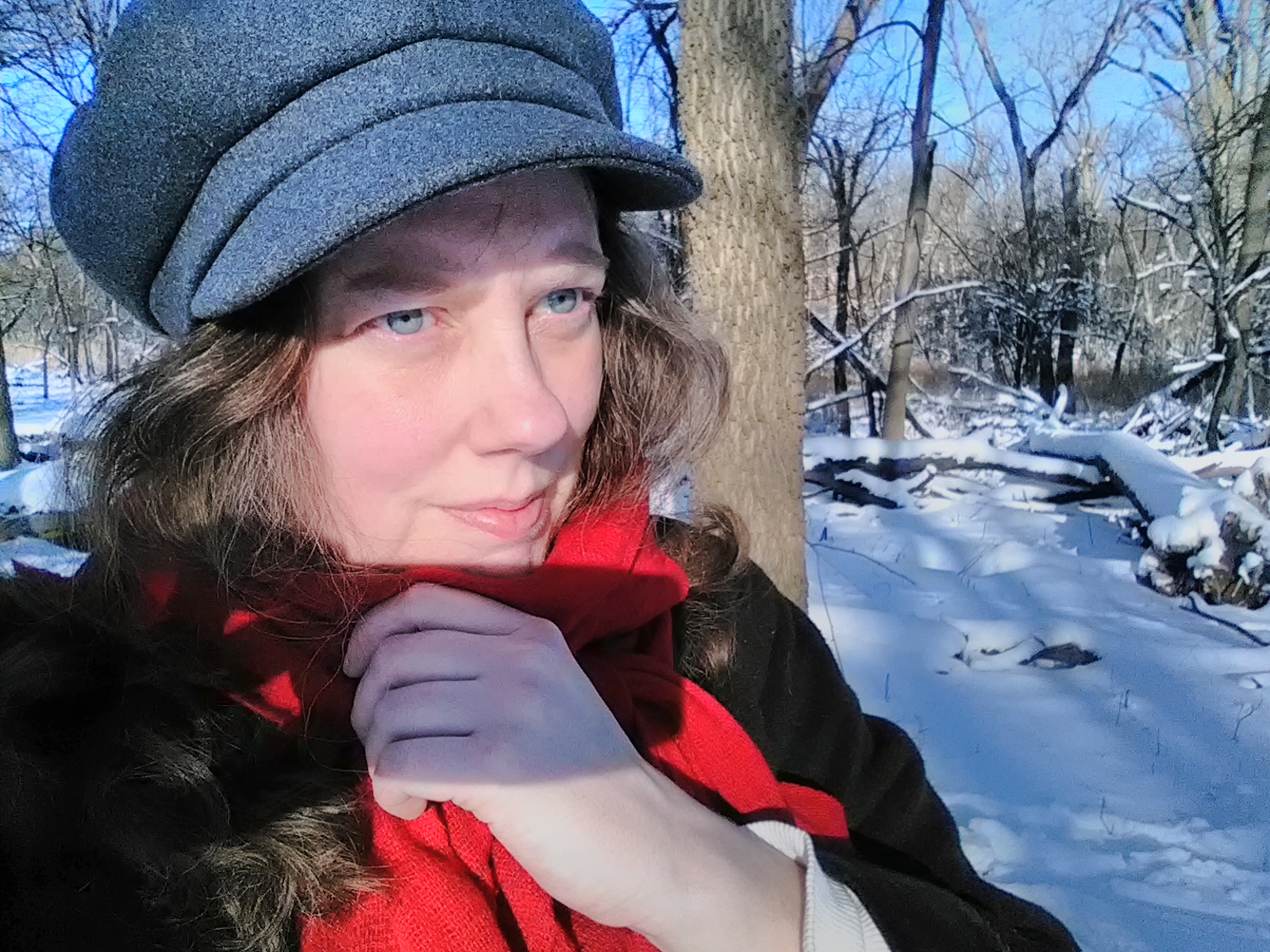 Snowflakes on a red scarf.